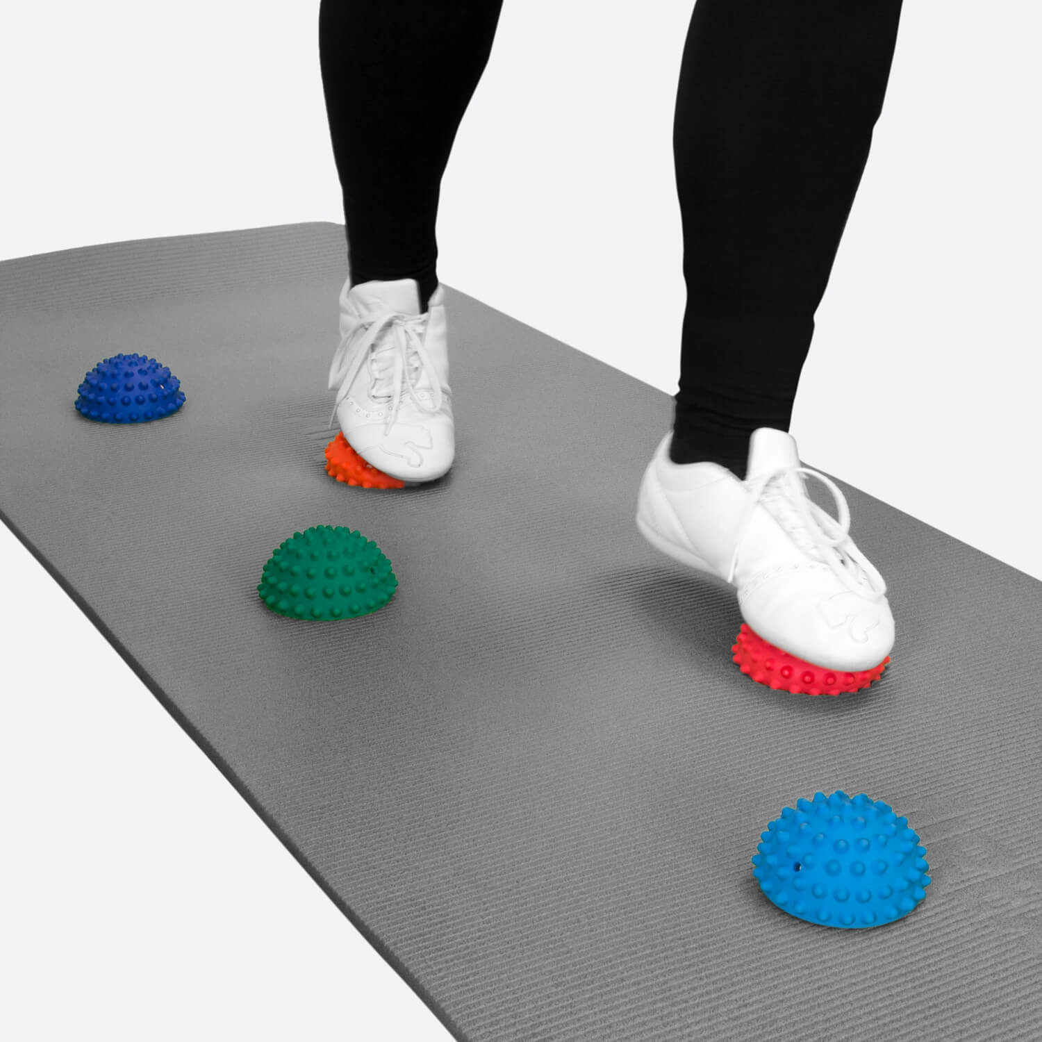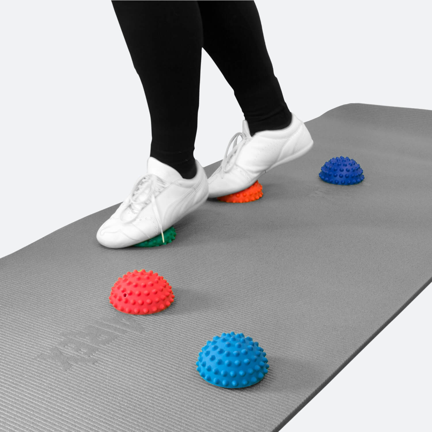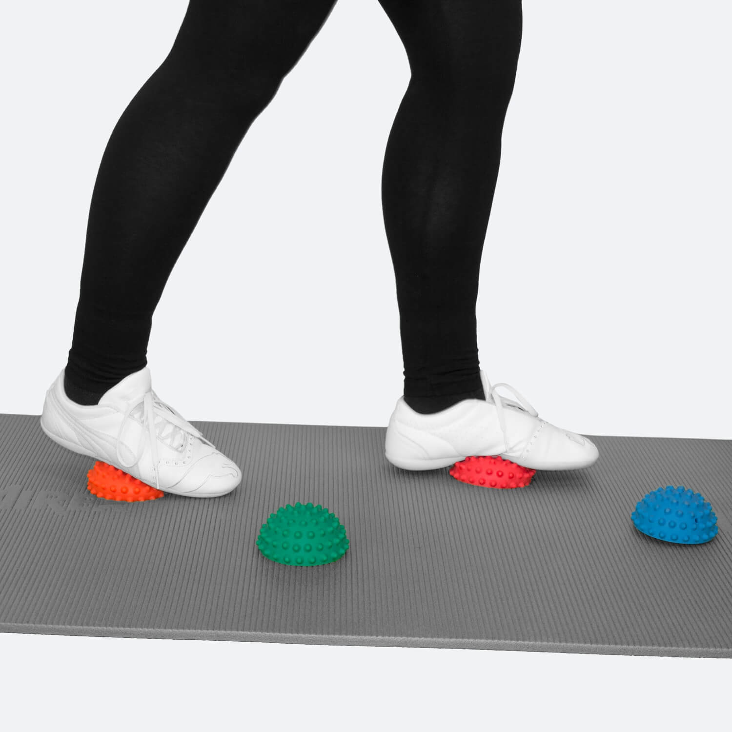 De balansegels hebben een diameter van 90 mm en een hoogte van 45 mm en kunnen worden gebruikt voor balanstrainingen. De balans egels hebben nopjes aan de bovenzijden voor extra stimulatie en grip en stimuleren de doorbloeding en zijn daardoor geschikt voor handen en voeten en kunnen ook specifieke delen van de voeten, tenen en handpalmen trainen. De moeilijkheidsgraad is te verhogen door de balansegels om te draaien en op de platte (onder)kant te zetten (bolle zijde omlaag).