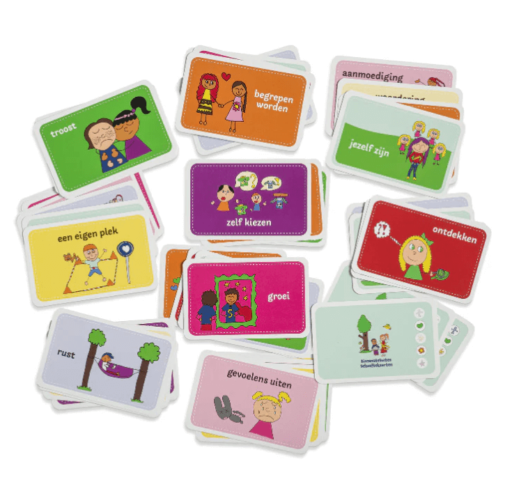 Prachtige kaarten met maar liefst 50 verschillende behoeften (je lichaam, je thuis, je eigen ik, jij en de ander, jij en de wereld) voorzien van unieke bijbehorende illustraties. De behoeften zijn overzichtelijk ingedeeld in verschillende typen behoeften en kunnen op diverse manieren gebruikt worden. Er zijn extra downloads met meerdere spelvormen beschikbaar.