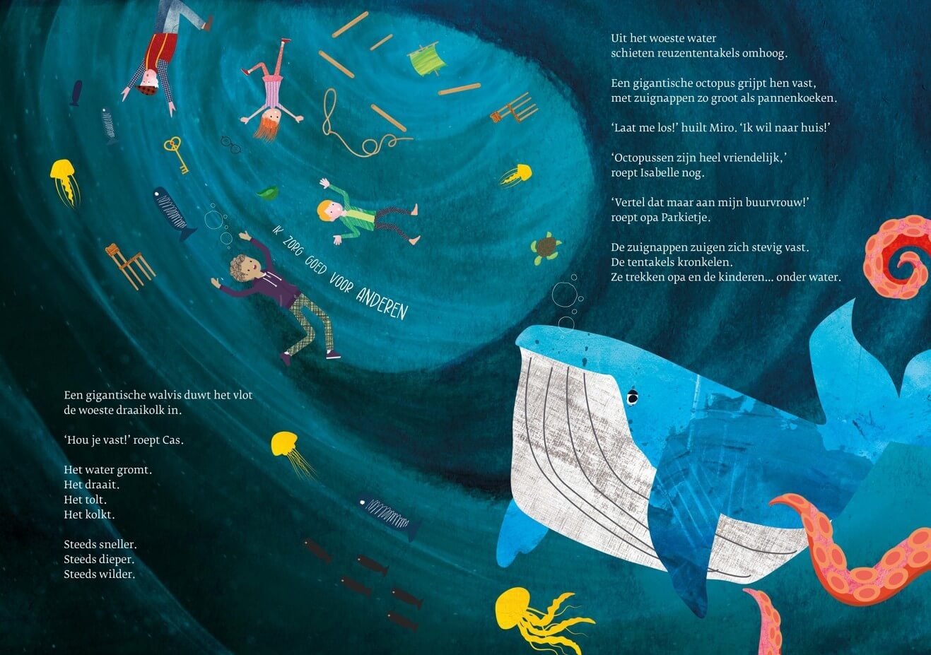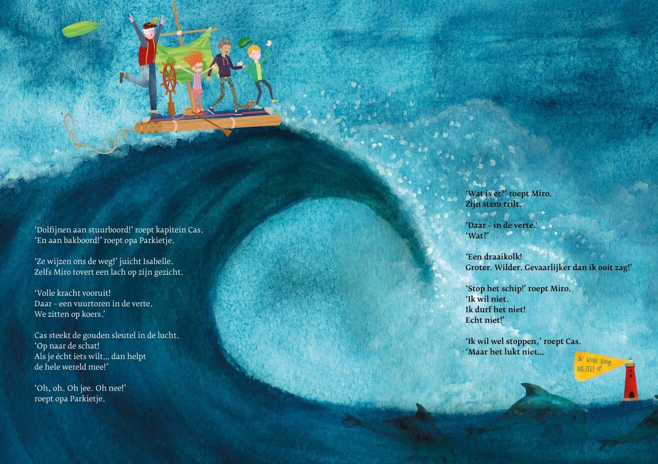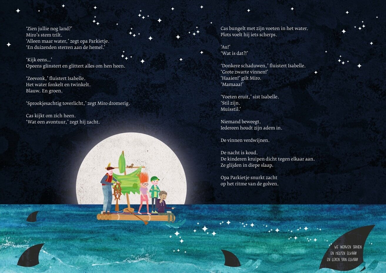 Hij bouwt een vlot, vaart weg met zijn vrienden en opa Parkietje, en komt terecht in een wereld waar verbeelding de koers bepaalt.