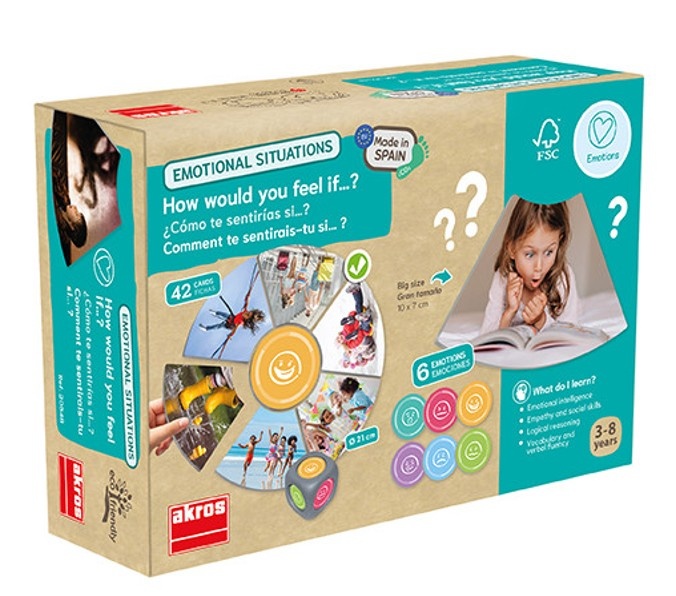 Een spel met realistische beelden om de emoties die we in verschillende situaties kunnen voelen te herkennen, accepteren en erkennen. Het helpt ons te leren dat we niet allemaal hetzelfde zijn en soms verschillende emoties voelen in dezelfde situatie. Het stimuleert empathie en respect voor emoties bij jezelf en bij anderen.