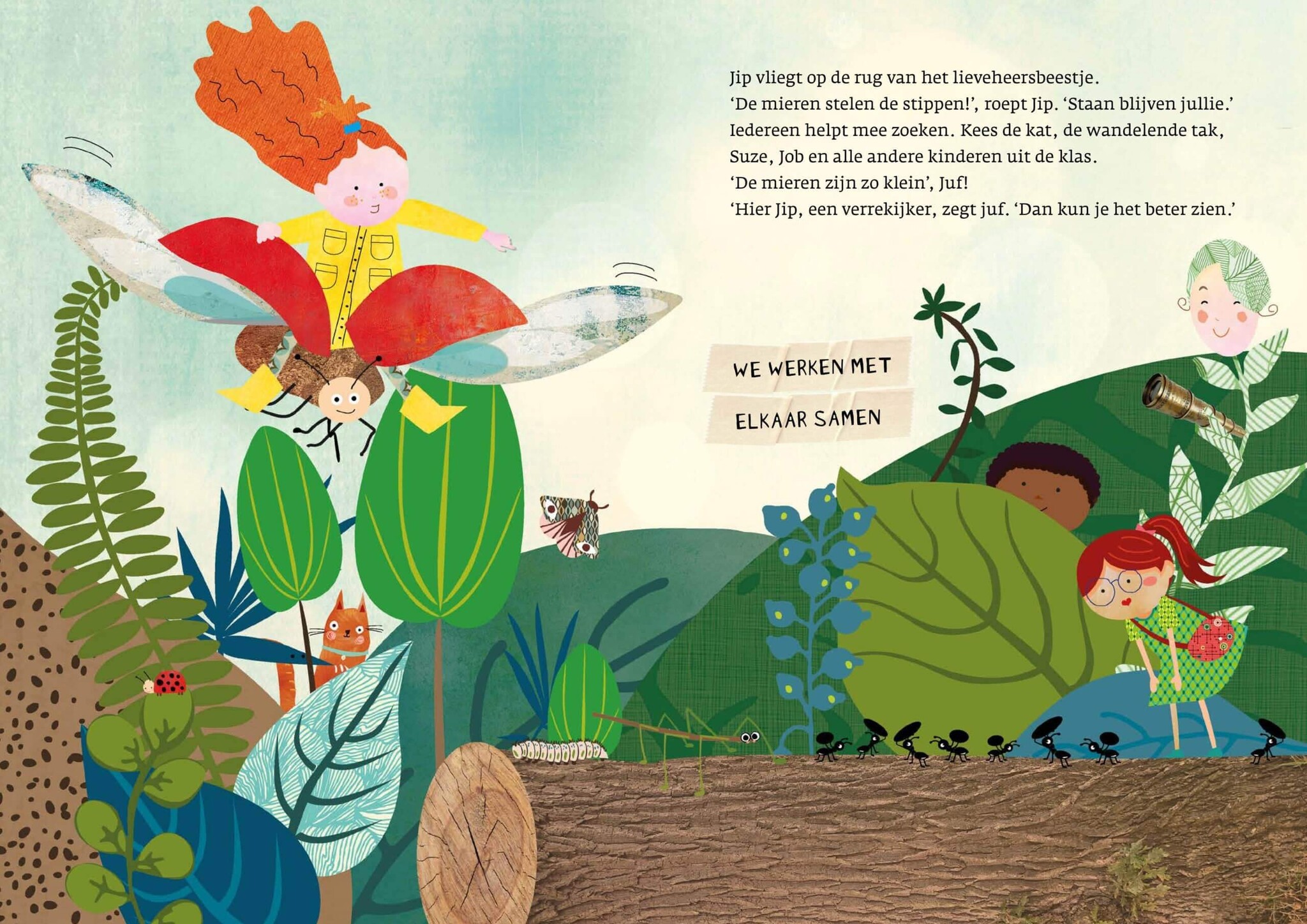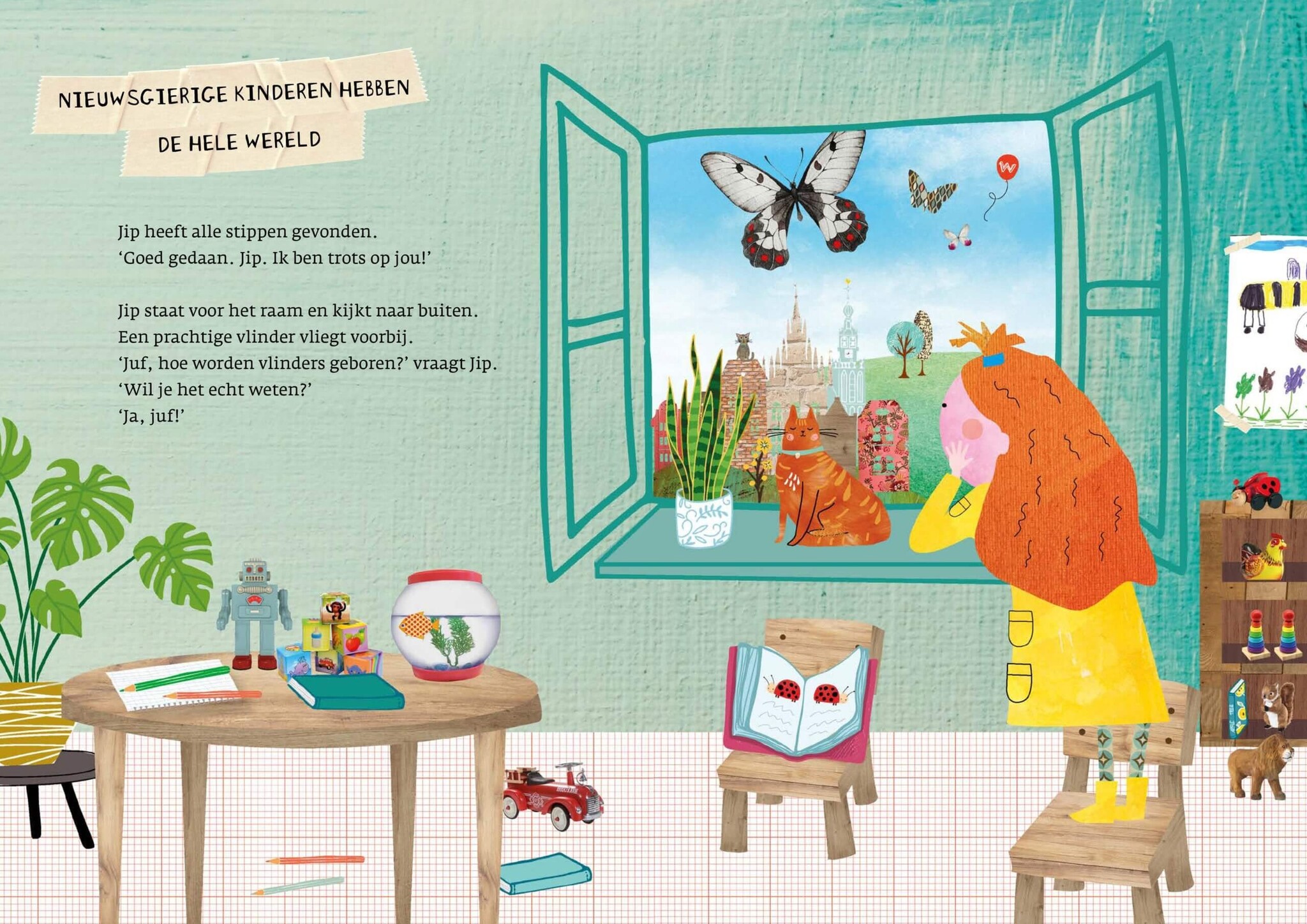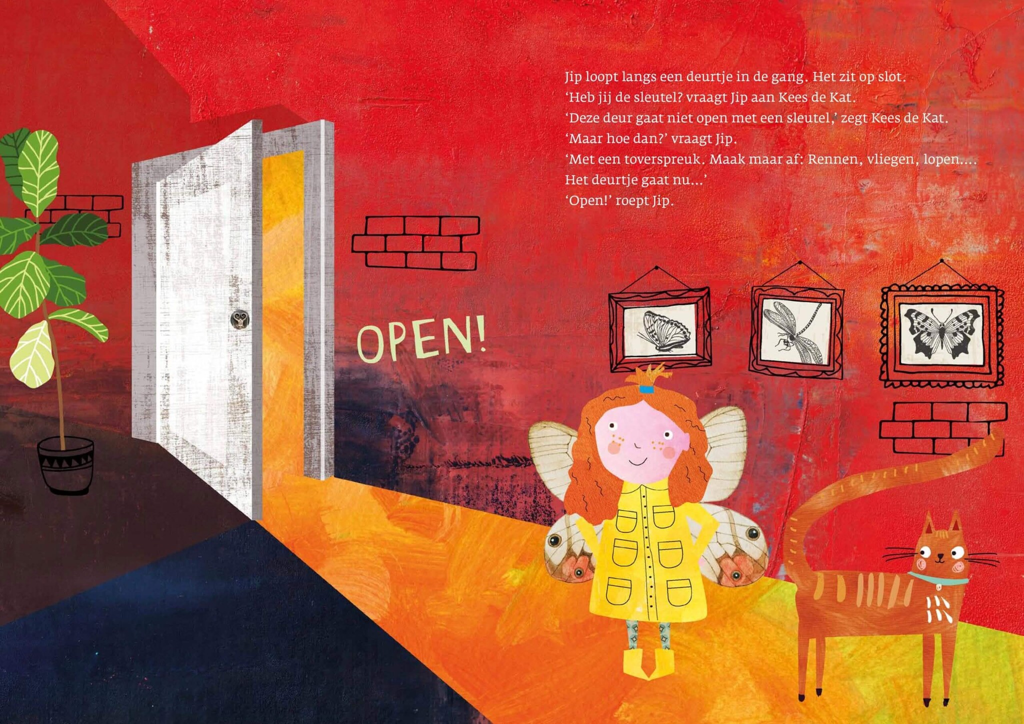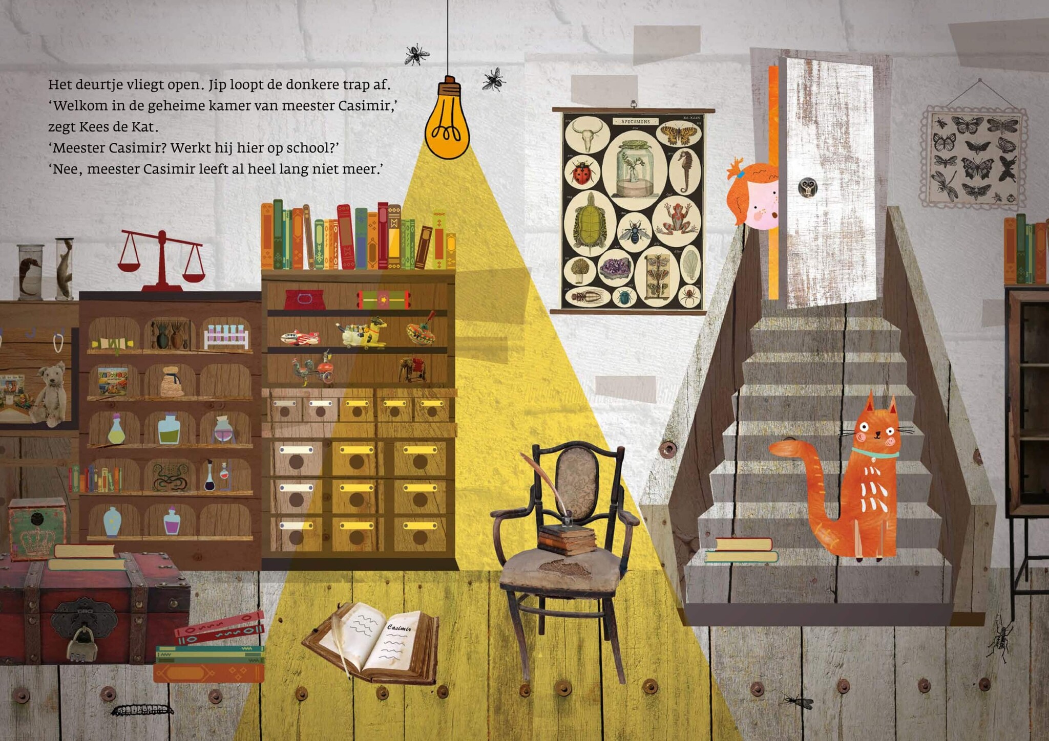 Haar allereerste dag op de Casimir zit vol spannende avonturen. Ze leert, speelt, werkt samen en ontdekt een geheimzinnig deurtje in de school… Met hulp van Kees de Kat lukt het om het te openen. En wat Jip daarachter vindt… dat moet je zelf lezen!
