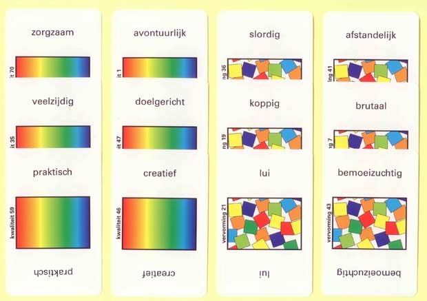 Het spel bestaat uit 144 kaarten met daarop persoonlijke eigenschappen. Op de ene helft staan kwaliteiten (prettige eigenschappen), zoals flexibel, betrouwbaar en initiatiefrijk. Op de andere helft staan vervormingen (onprettige eigenschappen), zoals arrogant, slordig en bot.