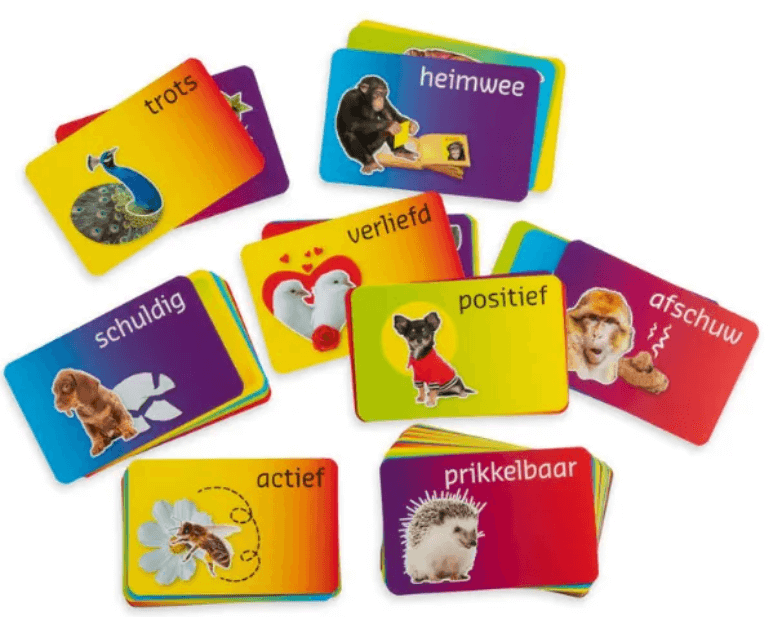Blij, bang, boos, verdrietig of trots? Ontdek spelenderwijs de taal van emoties. De 48 emoties en gevoelens zijn door middel van een kleurenschema overzichtelijk in kaart gebracht. De kleuren laten zien of het om een positieve of een moeilijke emotie gaat. De afbeelding op de voorkant weerspiegelt het gevoel. De korte uitleg van de emotie op de achterkant helpt om het gevoel te benoemen en te herkennen.