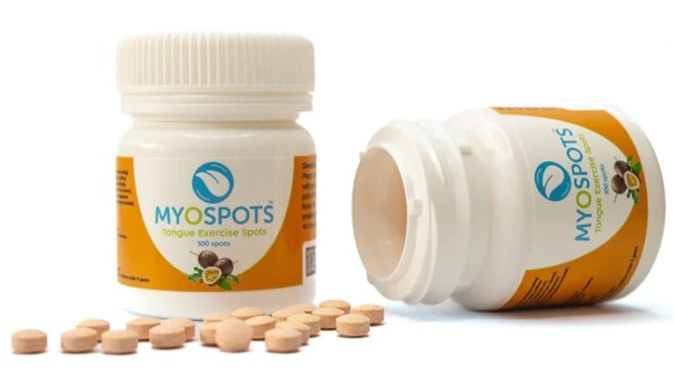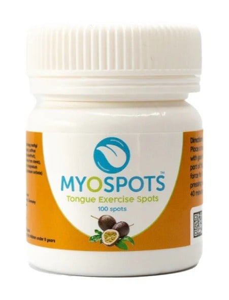 Myospots zijn kleine biologisch afbreekbare zelfklevende kussentjes, die worden gebruikt om de tongspieren te oefenen voor een juiste tongpositie, die een juiste (neus)ademhaling tot gevolg heeft.