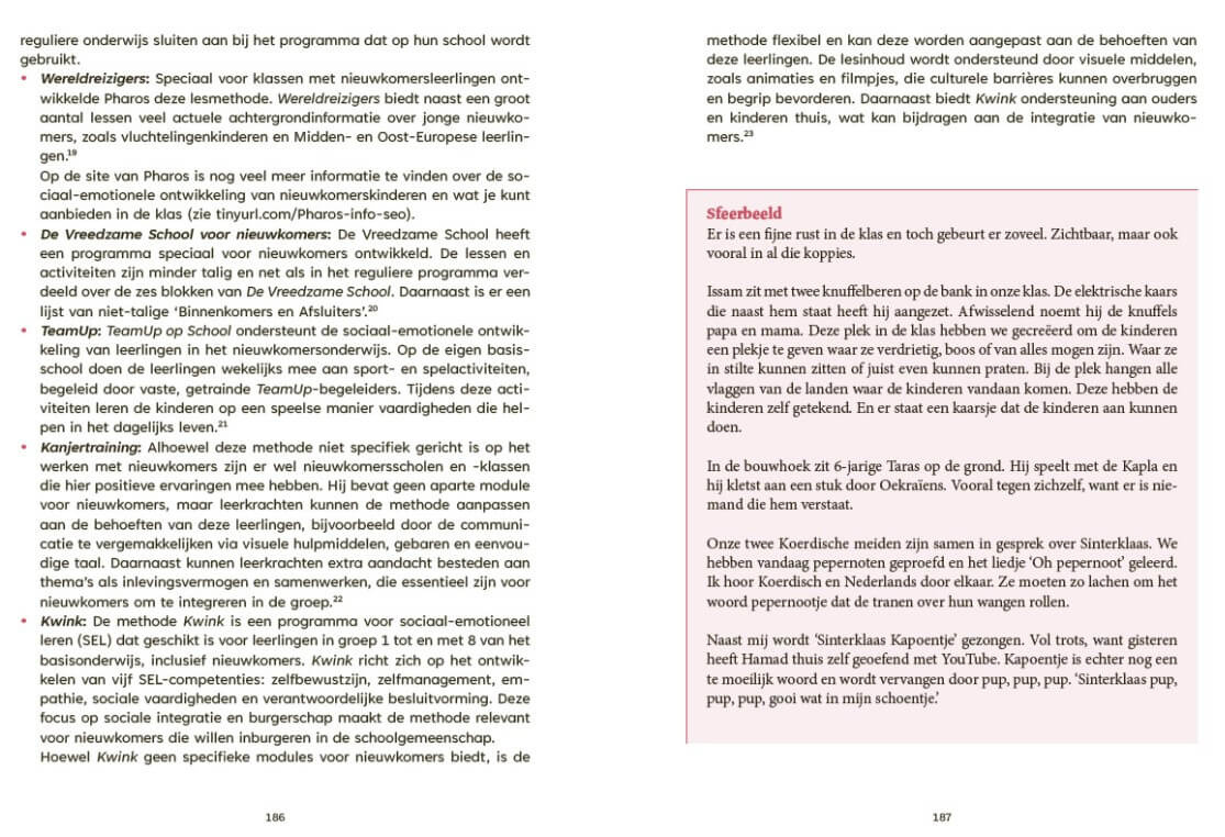 Naast deze praktische tips en inzichten vertelt zij vol warmte over de ontroerende en soms intense momenten die zij in haar groepen heeft beleefd. Zij schrijft vanuit liefde voor de nieuwkomersleerling en voor het nieuwkomersonderwijs — waar woorden worden geleerd in een andere taal, waar culturen samenkomen en waar echt leren begint met gezien worden.