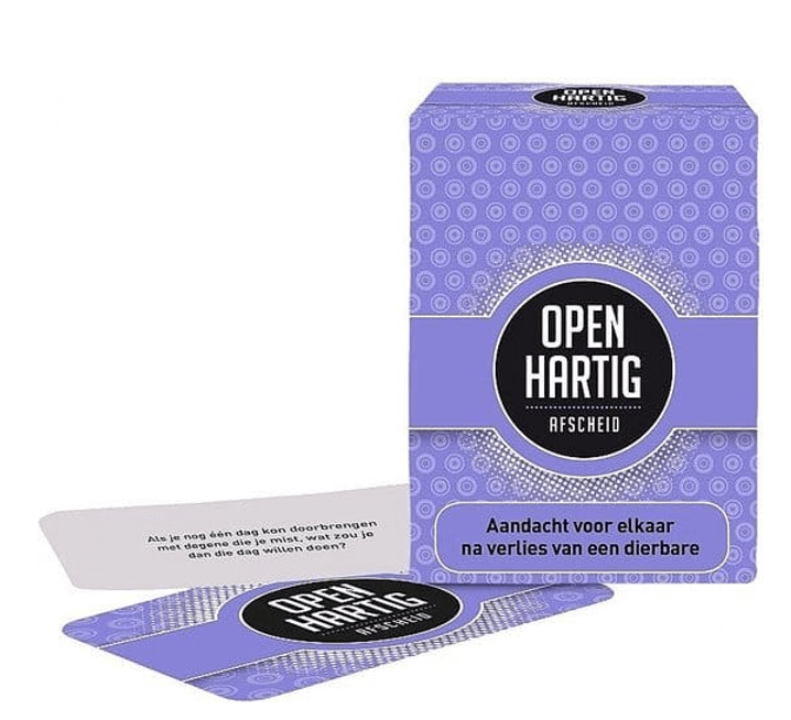 Openhartig Afscheid is een spel voor mensen die een dierbare hebben verloren. Je kunt het spel spelen met jongeren en volwassenen in familiekring, maar het spel kan ook in andere situaties ingezet worden. Denk bijvoorbeeld aan coaching of in het sociaal werk.