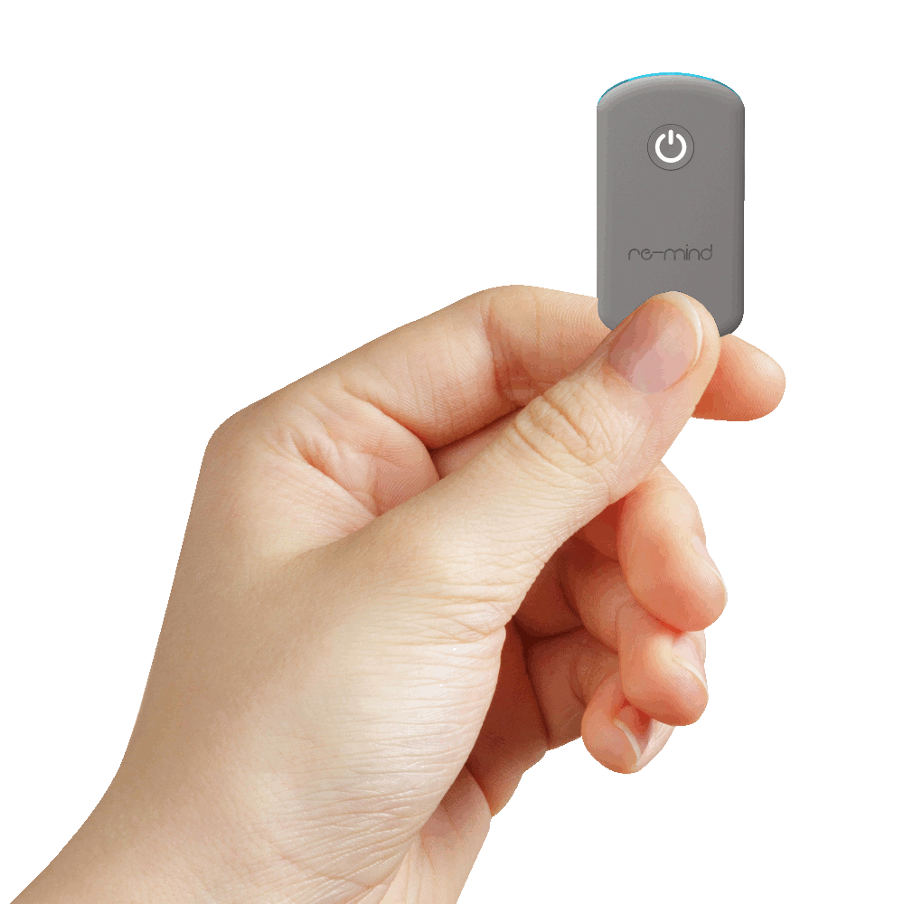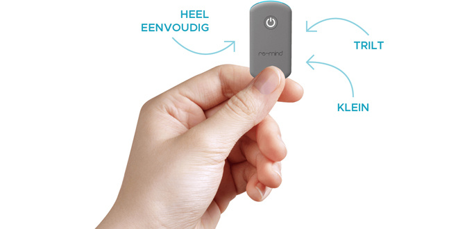 Gebruik Je draagt de re-mind de hele dag bij je, in je broekzak, sok, bh of polsbandje of aan een koordje om je nek. Het apparaatje trilt regelmatig en herinnert jou te ontspannen, je houding, ademhaling, etc.