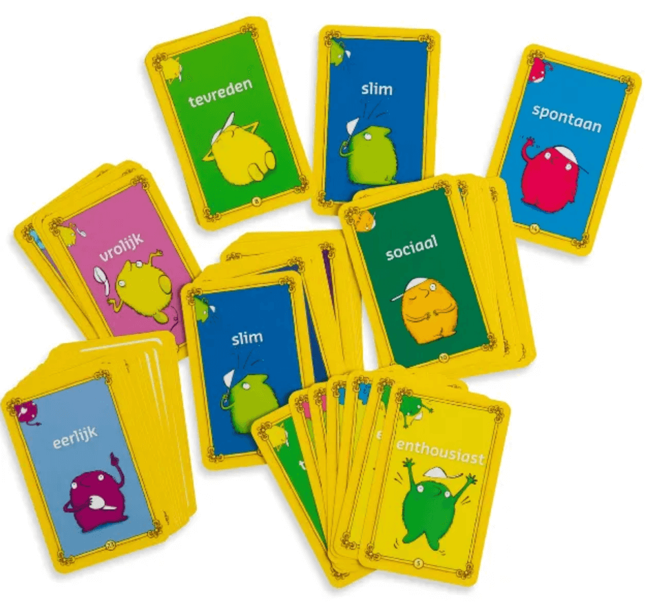 Inhoud: 55 kaartjes (formaat 87 x 56 mm), 2x 24 positieve eigenschappen kaartjes voor 1 tot 6 spelers. Verpakt in een kartonnen doos, inclusief handleiding en speelwijze.