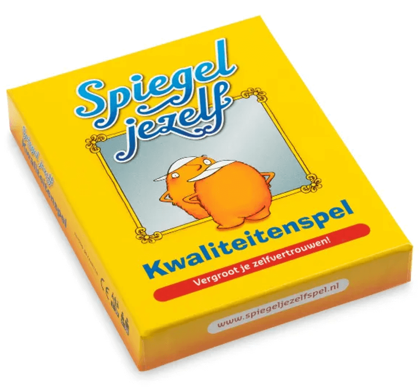 Spontaan, sportief, grappig, dapper, eerlijk, vrolijk. Voor iedereen van 8 tot 88 jaar die in de spiegel durft te kijken om zo zijn zelfvertrouwen te vergroten. Spiegel jezelf! Kijk met een positieve blik en zie je kwaliteiten. Met het Spiegel-jezelf-spel ontdek je spelenderwijs op een leuke spannende manier je sterke eigenschappen. Raak zo snel mogelijk al je kaarten kwijt en hoor wat anderen zo leuk aan je vinden. Je zult zien dat het je verrast! Complimenten die de winnaar zou kunnen krijgen: „Ik vind het kaartje met grappig erop goed bij jou passen, omdat je me vaak aan het lachen maakt.“