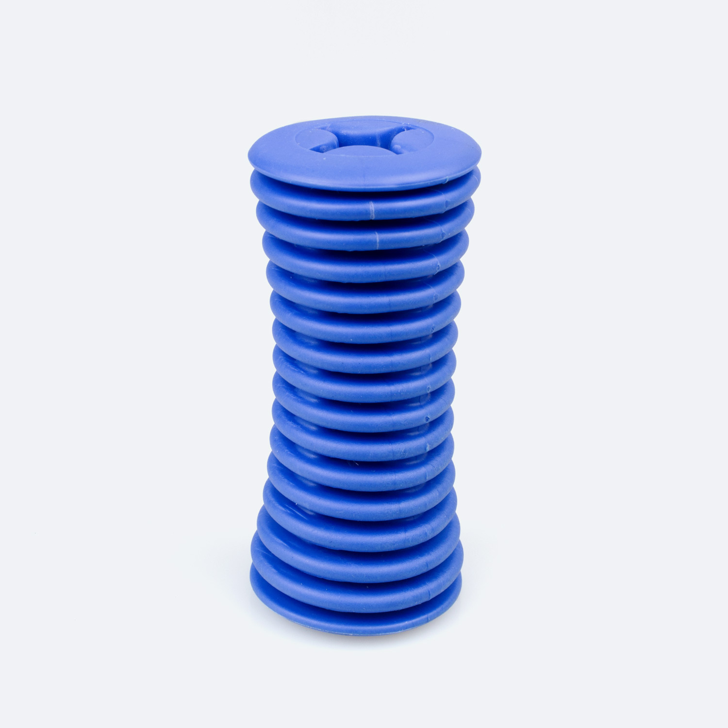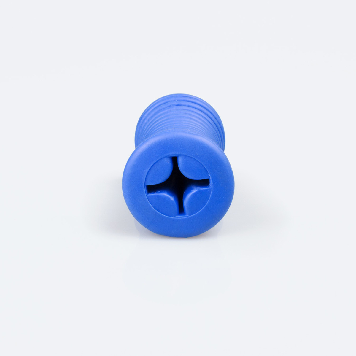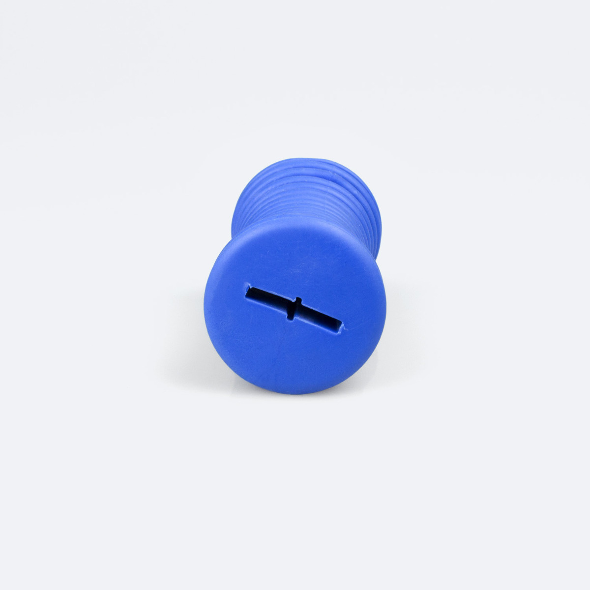 Inhoud: Lengte 100 mm, diameter 45 mm. Kleur blauw. Verschillende openingen: een ster voor mes of tandenborstel en een gleuf voor vork of lepel.