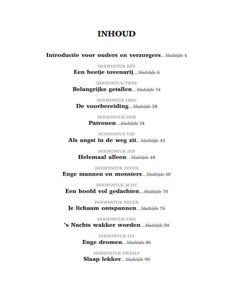 Zou het niet heerlijk zijn als je in bed kon stappen, lekker onder je dekbed kon kruipen en zonder gedoe in slaap zou vallen? Zonder dat je naar rare geluiden luistert of aan enge mannen denkt? Zonder nog een slokje water of een extra knuffel of nog een keer naar de wc? Bedtijd is moeilijk voor veel kinderen. Als je een kind bent dat niet durft te gaan slapen, en je bent ervan overtuigd dat alleen tovenarij het gemakkelijker kan maken, is dit een boek voor jou.